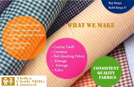 Thika Cloth Mills Ltd. is one of Kenya's Leading textile manufacturers and is committed to quality and customer service. For over six decades, we have been committed to producing high-quality fabrics while supporting local communities through initiatives such as the “Buy Kenya Build Kenya” campaign. We proudly contribute to the Kenyan economy by sourcing cotton from local farmers and ensuring the highest standards in our production process.